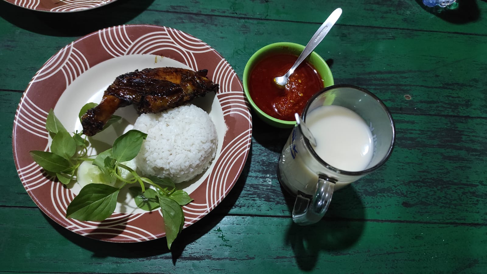 Untuk makanannya sendiri, gua makan ayam bakar + nasi dan lalapan. Dan rasa ayam bakarnya, cukup enak. Biasanya, kalo kita beli ayam bakar dan sejenisnya, paling kita hanya dikasih sambal sebanyak 1 s/d 2 sendok makan. Yang spesialnya di kedai ini, kita di kasih sambal semangkok full (mangkok yang biasa di pakai penjual bakso, soto, dll untuk wadah sambel). Untuk pecinta sambel, jadi ngga perlu khawatir kekurangan sambel pas makan di kedai ini.